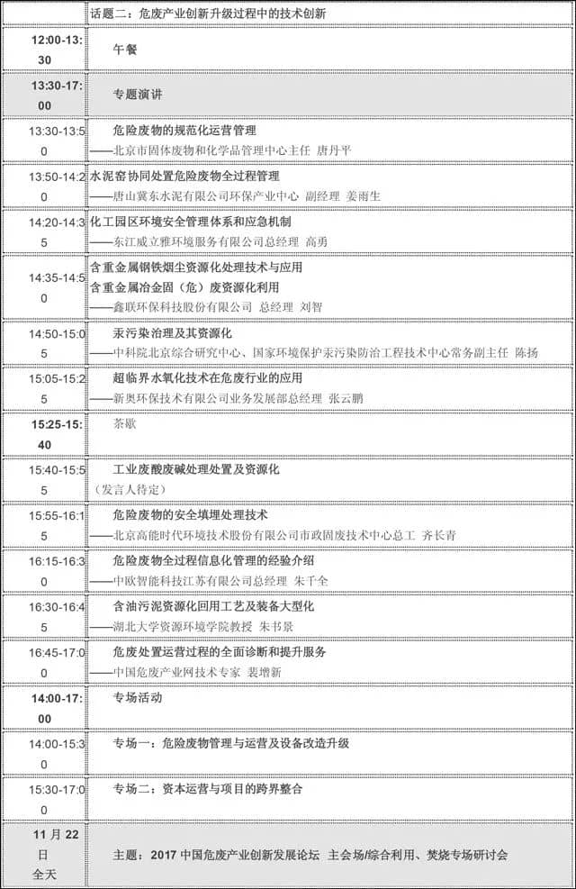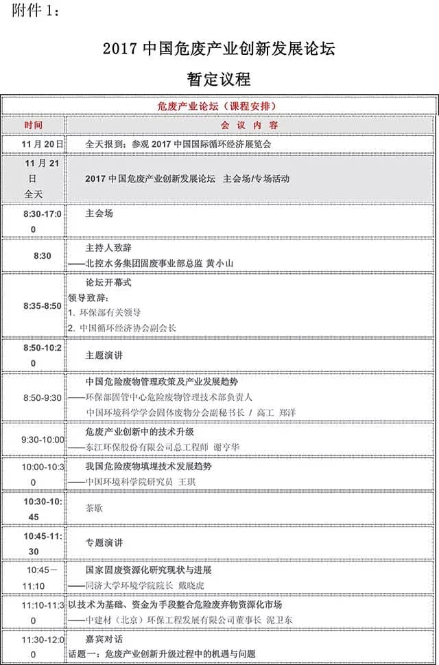 1、2017中國危廢產(chǎn)業(yè)創(chuàng)新發(fā)展論壇暨危廢資源化利用與無害化處置研討會(huì)暫定議程