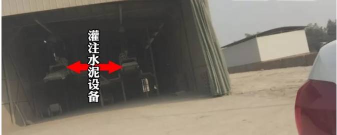 這家企業(yè)白天休息,晚上開工。加工廠大車間里有兩臺灌注水泥的設(shè)備,地上也積滿了水泥灰,地上和樓上堆了幾堆坪塘牌水泥和南方水泥的包裝袋。