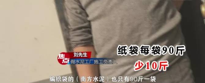 除了質(zhì)量低劣以外,假水泥還缺斤少兩。水泥行業(yè)通常是每包一百斤,20包水泥作為一噸來計(jì)算,但這里每包水泥都少幾十斤。