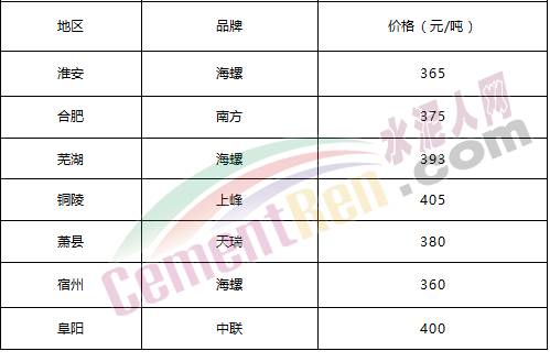 安徽地區(qū)參考價(jià)格(360元-405元/噸)