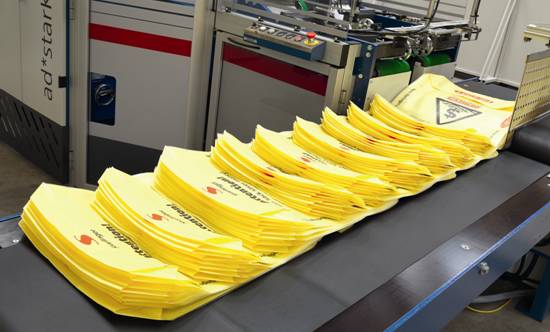 AD*STAR袋已被開發(fā)用于優(yōu)化現(xiàn)代水泥生產(chǎn):可提高水泥的生產(chǎn)效率和可持續(xù)性,減少產(chǎn)品損失,使工作環(huán)境更加健康。二十世紀(jì)九十年代中期,史太林格奧地利有限公司已經(jīng)獲得這項(xiàng)技術(shù)的專利,材料的特性首先決定了AD*STAR袋的牢固性和耐用性。其次起決定作用的就是特殊的生產(chǎn)工藝。它從擠出的聚丙烯扁絲開始,通過拉伸和定型獲得強(qiáng)力和延伸性。然后扁絲被織成筒布,并在外面涂覆一層聚丙烯涂膜。涂層的平均厚度為20UM,涂層持久耐用,保證了袋子的密封性,由此防止物體受潮以及隔絕其他外部影響。與縫底袋最大的不同在于制袋工藝,涂膜后的聚丙烯扁絲編織筒布被放置在專門研發(fā)的制袋機(jī)上,對筒布施加熱空氣和壓力。熱空氣首先軟化聚丙烯涂膜層,然后閥口,頂貼和底貼被固定在被折疊的袋子底部并進(jìn)行冷卻。這過程生產(chǎn)出緊密,結(jié)實(shí),耐用的方底閥口袋。袋子的形狀可以是方底開口袋,普通閥或口袋閥袋子,也可以根據(jù)實(shí)際需求調(diào)整袋子的形狀。制袋機(jī)配備電磁輸送系統(tǒng),防止用來包裝產(chǎn)品的布料出現(xiàn)小孔,使產(chǎn)品完全密封。在填充高排氣性要求貨物時(shí),可以使用通過微打孔單元處理的袋子,在具備高透氣性的同時(shí)保證了貨物的零損漏。如今,全球150家工廠每年生產(chǎn)超過80億只AD*STAR袋。