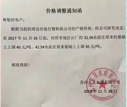蘇州東吳水泥漲價(jià)函