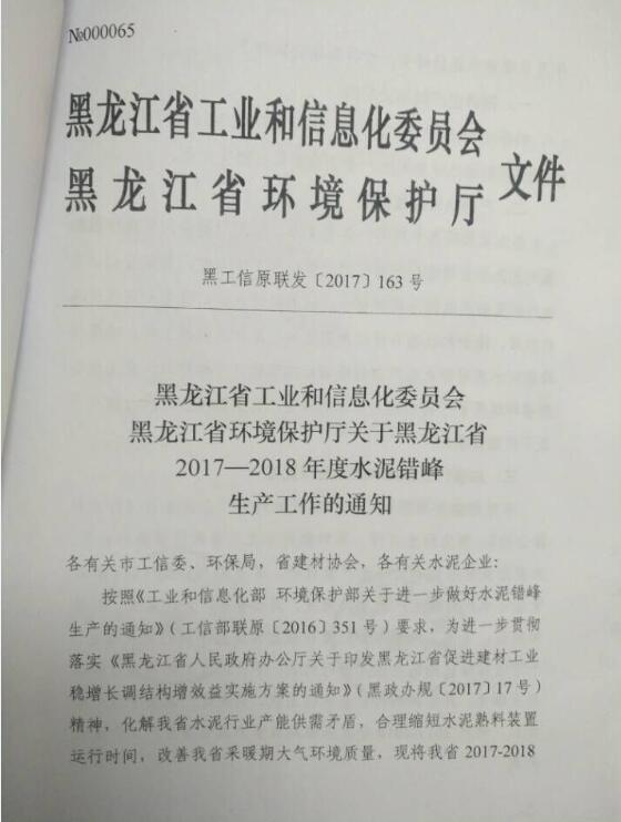 黑龍江省工業(yè)和信息化委員會(huì)黑龍江省環(huán)境保護(hù)廳關(guān)于黑龍江省2017-2018年度水泥錯(cuò)峰