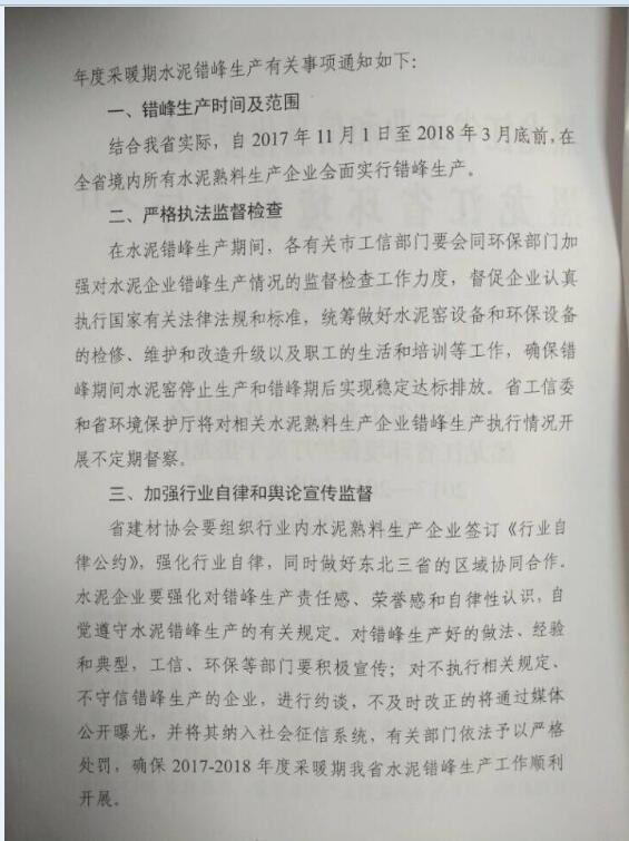【水泥人網(wǎng)】近日,黑龍江省工信委黑龍江省環(huán)保廳聯(lián)合發(fā)布《關(guān)于黑龍江省2017-2018年度水泥錯(cuò)峰生產(chǎn)工作的通知》,將于2017年11月1日至2018年3月底前,在全省境內(nèi)所有水泥熟料生產(chǎn)企業(yè)全面實(shí)行錯(cuò)峰生產(chǎn)。