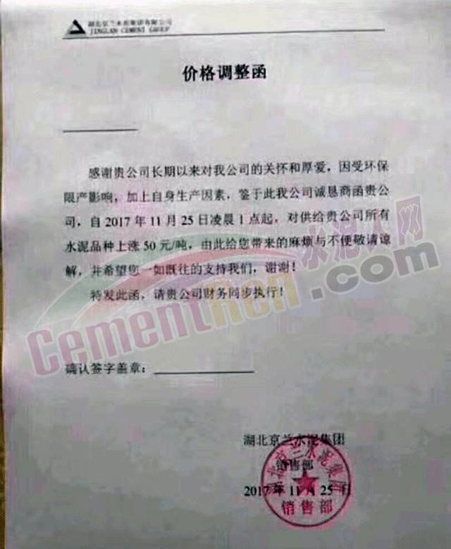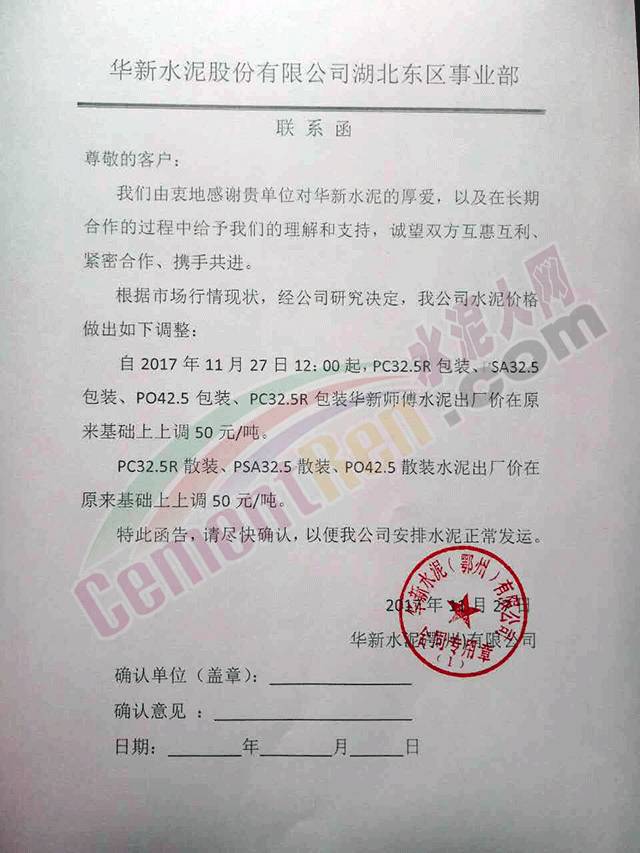 1 華新鄂州漲價(jià)函