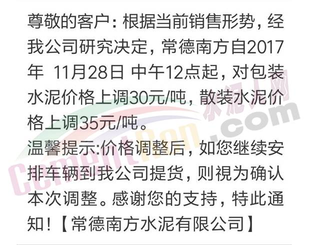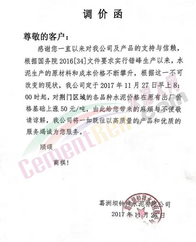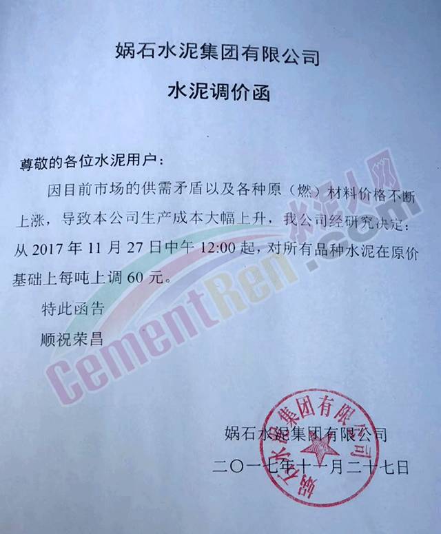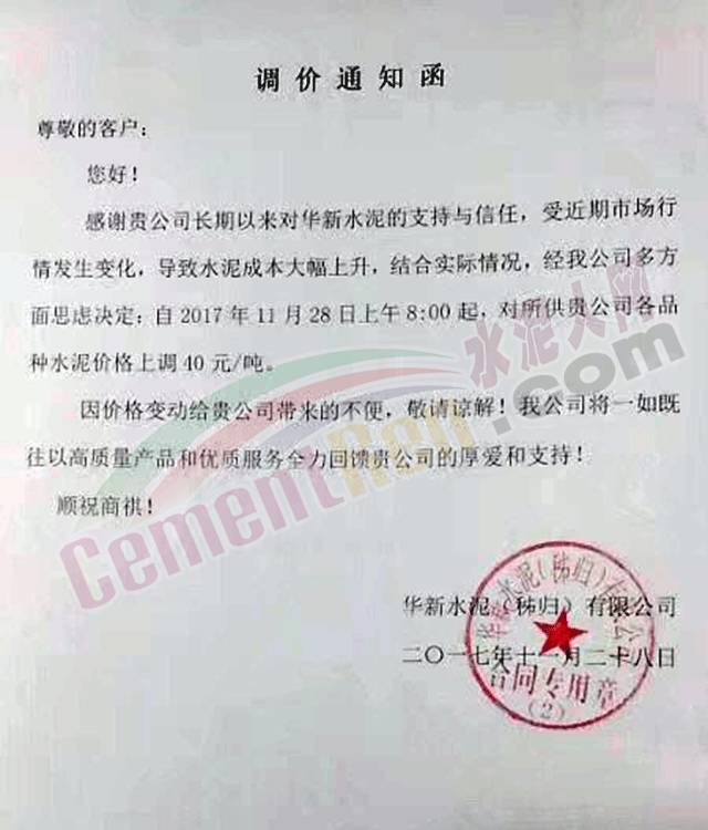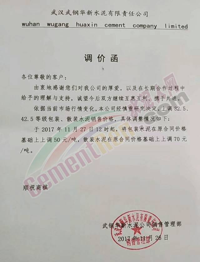 4 媧石水泥漲價(jià)函