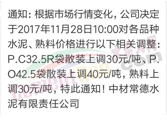 9 中材常德漲價(jià)通知