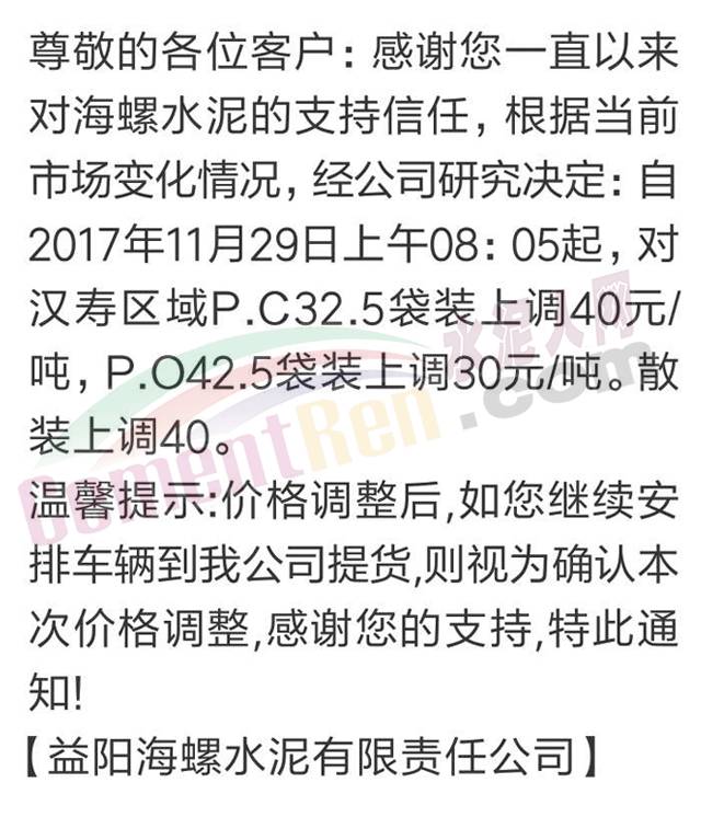 10 益陽(yáng)海螺漲價(jià)通知