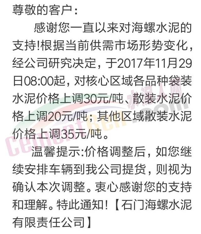18 漣源海螺漲價(jià)通知