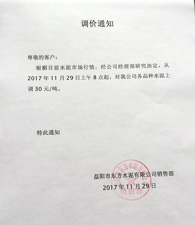 19 益陽(yáng)東方水泥漲價(jià)函