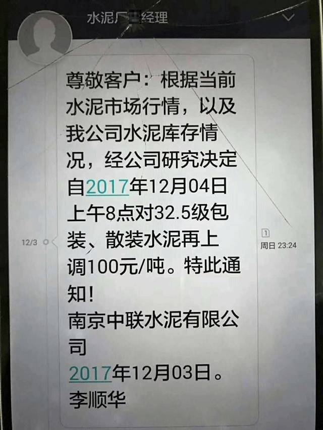 此前,南京中聯(lián)水泥有限公司發(fā)通知給下游客戶稱,根據(jù)當(dāng)前水泥市場(chǎng)行情,以及公司庫存情況,經(jīng)公司研究決定自12月4日上午8點(diǎn)起對(duì)32.5級(jí)包裝、散裝水泥上調(diào)100元/噸。上調(diào)后執(zhí)行的價(jià)格是32.5袋裝水泥620元/噸。