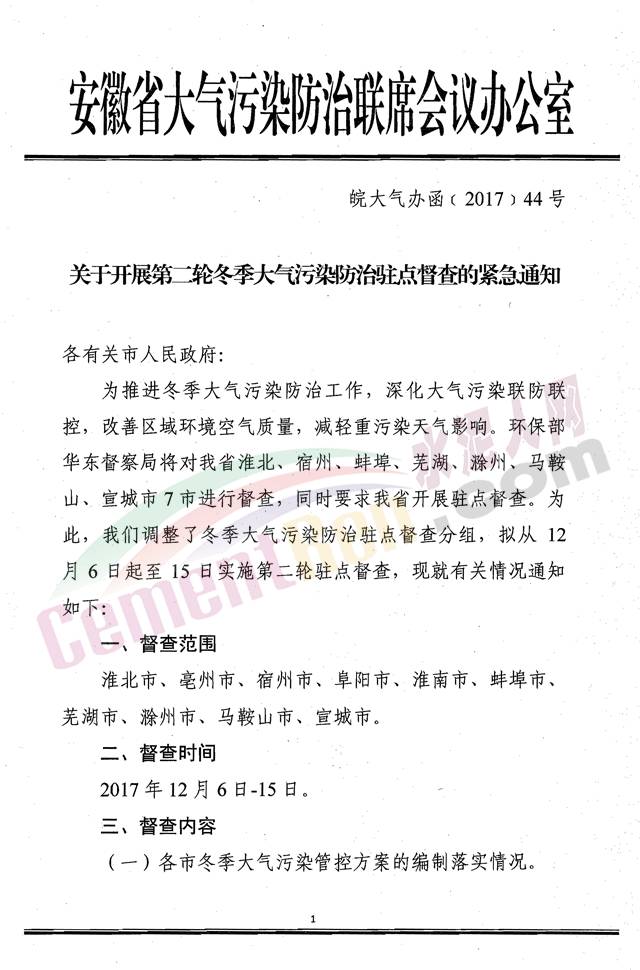 此前安徽省曾發(fā)文通知自2017年11月23日起至2018年1月31日對淮北、亳州、宿州、蚌埠、阜陽、淮南、安慶七市實施駐點督查,對其余各市開展機動式巡查暗訪。