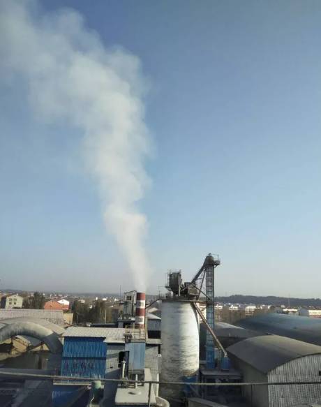 進(jìn)廠時(shí)礦渣微粉含水量大(約10%左右),需通過(guò)輸送帶送至烘烤設(shè)備進(jìn)行烘烤,達(dá)到將含水量降至1%以下才符合生產(chǎn)要求。該生產(chǎn)過(guò)程中所產(chǎn)生的氣體均需通過(guò)布袋除塵過(guò)濾后才向外界排放,成分主要是水。由于冬季氣溫低,熱的水蒸氣遇冷凝結(jié)形成水霧。夏季溫度高則無(wú)此現(xiàn)象。居民朋友們不必?fù)?dān)心。