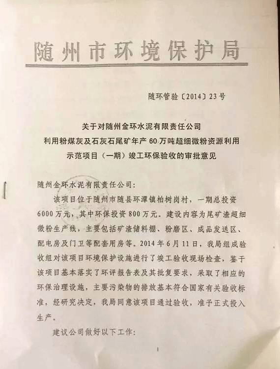 下圖為隨州市環(huán)保局對(duì)該項(xiàng)目的竣工環(huán)保驗(yàn)收文件復(fù)印件。
