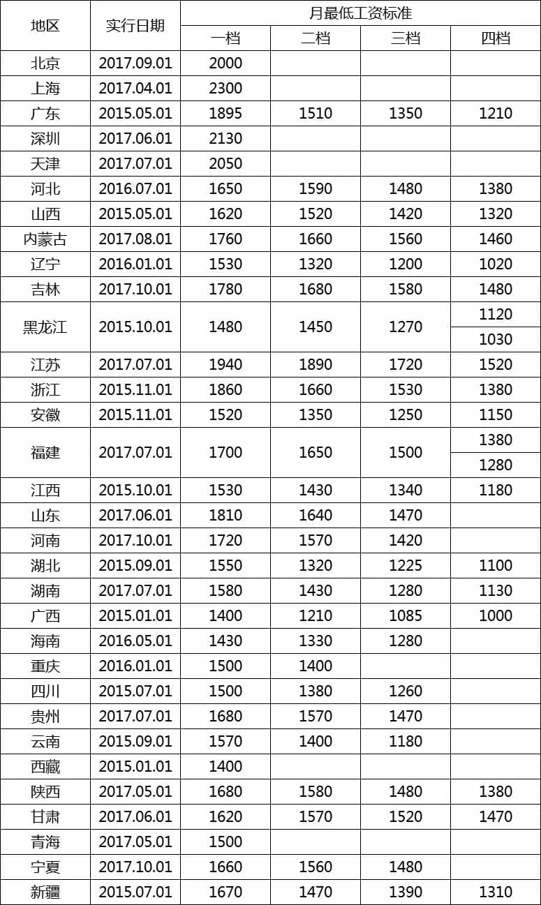 【水泥人網(wǎng)】近日人力資源和社會(huì)保障部舉行發(fā)布會(huì),全國(guó)共有17個(gè)地區(qū)調(diào)整了最低工資標(biāo)準(zhǔn),平均調(diào)增幅度10.4%,全國(guó)月最低工資標(biāo)準(zhǔn)最高的是上海2300元,小時(shí)最低工資標(biāo)準(zhǔn)最高的是北京22元。