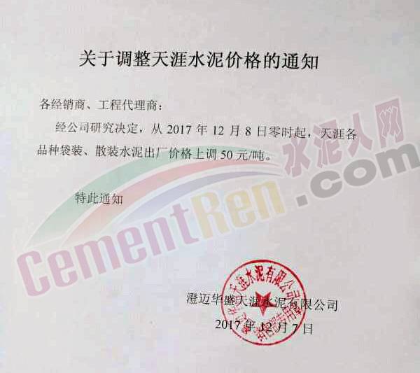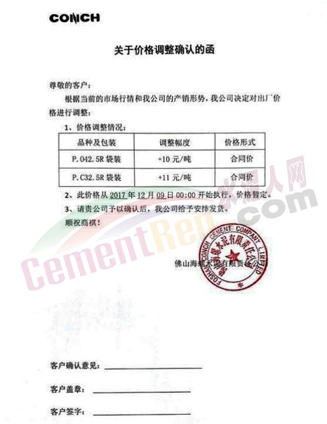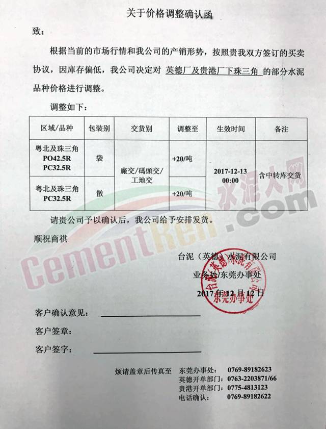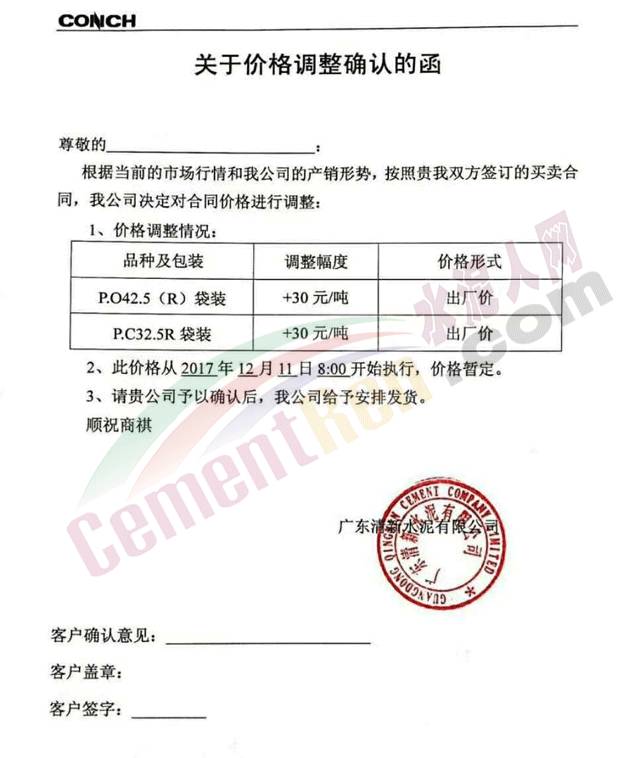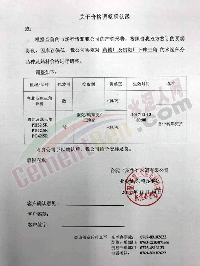 廣東地區(qū)12月9日佛山海螺PO包裝上調(diào)10元噸,PC包裝上調(diào)11元噸,12月11日清新海螺、廣英PO包裝、PC散包裝上調(diào)30元噸,12月12日江門海螺PO/PC包裝上調(diào)20元噸,12月13日英德海螺、臺泥、華潤、中材PO包裝、PC散包裝上調(diào)20元噸。