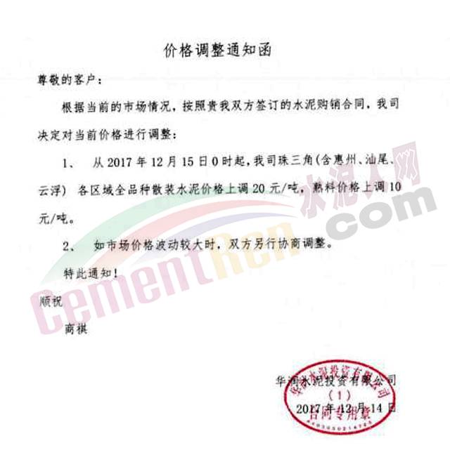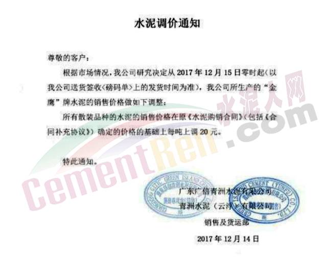 【水泥人網(wǎng)】自今日零點起珠三角地區(qū)部分企業(yè)將上調(diào)各品種水泥價格。上調(diào)幅度在20元/噸,熟料價格同期上調(diào)10元/噸。