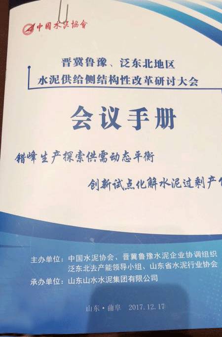 會議由中國水泥協(xié)會、晉冀魯豫水泥企業(yè)協(xié)調(diào)組織泛東北去產(chǎn)能領(lǐng)導小組、山東省水泥行業(yè)協(xié)會主辦。由山東山水水泥集團有限公司承辦。會議議題分為政策發(fā)布,協(xié)會領(lǐng)導講話和會議交流等。