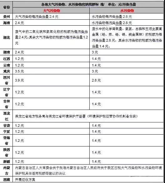 【各地環(huán)保稅稅額標(biāo)準(zhǔn)】請(qǐng)參照計(jì)算