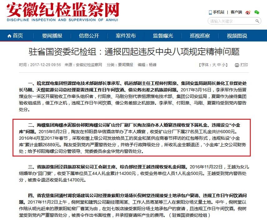 安徽紀(jì)檢監(jiān)察網(wǎng)通報原文