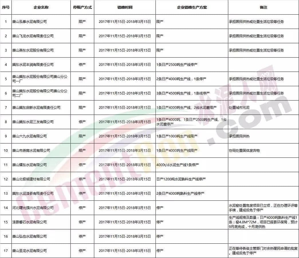 2017-2018采暖季重點(diǎn)行業(yè)錯(cuò)峰生產(chǎn)企業(yè)清單如下: