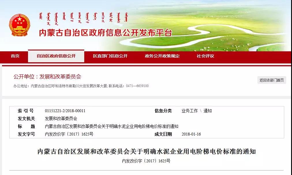根據(jù)《內(nèi)蒙古自治區(qū)發(fā)展改革委 經(jīng)濟和信息化委員會轉發(fā)國家發(fā)展改革委 工業(yè)和信息化部關于水泥企業(yè)用電實行階梯電價政策有關問題的通知》(內(nèi)發(fā)改價字[2016]1097號)有關規(guī)定,2017年自治區(qū)經(jīng)信委組織完成了對全區(qū)水泥企業(yè)2016年水泥生產(chǎn)量及其耗電量的統(tǒng)計、核查,確定了我區(qū)水泥企業(yè)的產(chǎn)品可比綜合電耗,已向社會公布,我委也收到了自治區(qū)經(jīng)信委《關于報送電解鋁、水泥、鋼鐵企業(yè)能耗核查結果的函》(內(nèi)經(jīng)信節(jié)綜函[2017]313號)。基于此,我委現(xiàn)將水泥企業(yè)用電階梯電價標準明確如下(見附件)。電網(wǎng)企業(yè)要根據(jù)自治區(qū)經(jīng)信委公布的企業(yè)名單、電耗水平和我委公布的電價標準,按照抄見的水泥生產(chǎn)用電量自2016年7月1日起收取核查期內(nèi)的加價電費。