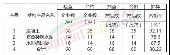 2017年第3季度我局主要抽取了預拌混凝土、復合硅酸鹽水泥、水泥包裝袋等3類68批次產(chǎn)品?,F(xiàn)將抽查情況通報如下: