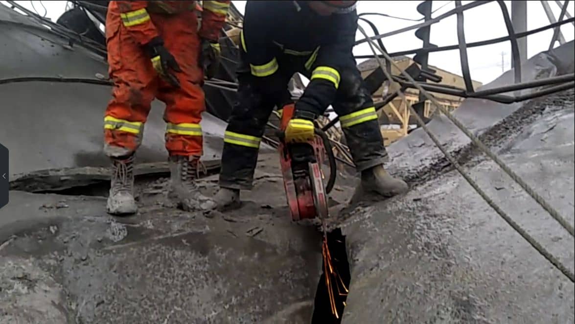 “水泥罐體里的水泥太重了,足足達(dá)到了100噸左右,鋼絲繩沒(méi)辦法拉動(dòng)”,消防官兵回憶時(shí)對(duì)記者說(shuō),救援時(shí)間一分一秒地過(guò)去,為了盡快把被埋壓在下面的工人救出,大家在多次嘗試著用吊機(jī)未果后,決定利用消防金屬切割機(jī)將整個(gè)罐體慢慢切割成好幾部分,再利用吊機(jī)進(jìn)行起吊。