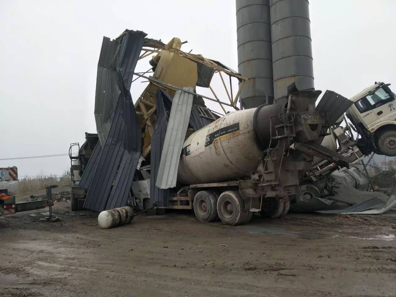 “工廠里面有豎立的三個(gè)水泥罐體,是其中一個(gè)罐體發(fā)生坍塌,坍塌后的罐體壓住了停在邊上的兩輛水泥罐車(chē)和罐體正下方的一間配電房,而且配電房?jī)?nèi)還有一名工人,情況很著急”,處警的官兵告訴金報(bào)記者,當(dāng)時(shí)坍塌現(xiàn)場(chǎng)周?chē)紳M了鋼板等廢墟,一片狼藉。