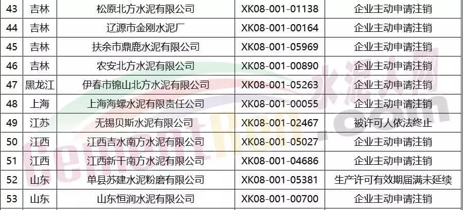 【水泥人網(wǎng)】昨日(25日),質(zhì)量總局發(fā)布公告2018年第13號,關(guān)于注銷南通東日鋼鐵有限公司等企業(yè)工業(yè)產(chǎn)品生產(chǎn)許可證的公告,其中涉及水泥企業(yè)204家。