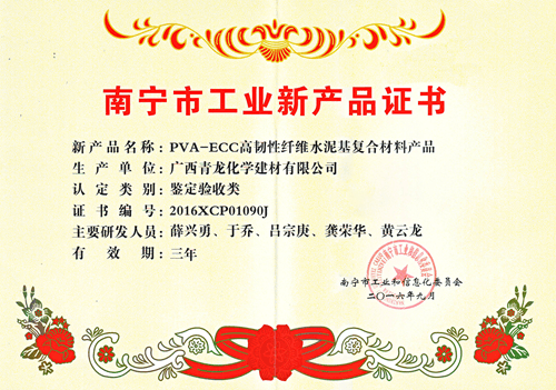 青龍集團公司薛博士指出,聚乙烯醇纖維具有很好的力學性能,耐酸堿腐蝕,纖維具有良好的分散性,纖維與水泥的親和性好,粘合強度高,對人體和環(huán)境無毒無害,因此將其應用到水泥基材料能充分改善混凝土的性能。聚乙烯醇纖維增強水泥基材料作為一種具有高韌性的延性混凝土,具有很大的吸收能量的能力,因此可以顯著改善混凝土結(jié)構(gòu)的抗震性能,可用于抗震結(jié)構(gòu)、抗沖擊結(jié)構(gòu)、結(jié)構(gòu)裂縫控制和耐損傷工程結(jié)構(gòu)?;诖?,青龍集團公司博士研發(fā)團隊通過利用聚乙烯醇纖維的特點和優(yōu)勢,研究了聚乙烯醇纖維增強水泥基材料的性能和在外墻板、戶外家具、輕質(zhì)藝術(shù)構(gòu)件、三維效果地坪及仿大理石面板方面應用,并取得了較大的技術(shù)突破。該項目產(chǎn)品具有綠色環(huán)保、防水、強度高、耐候性好、防火性能好和裝飾效果獨特等優(yōu)勢,被南寧市工信委推薦為工業(yè)新產(chǎn)品。