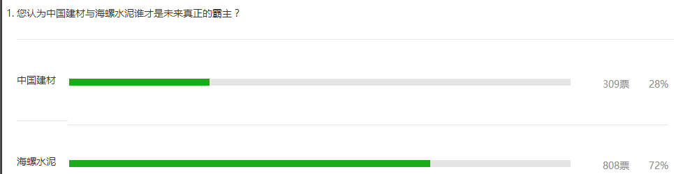 通過水泥人網(wǎng)的民調(diào)發(fā)現(xiàn),更多水泥人還是更看好海螺水泥未來的發(fā)展前景。