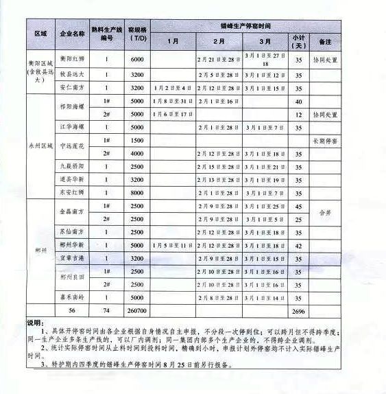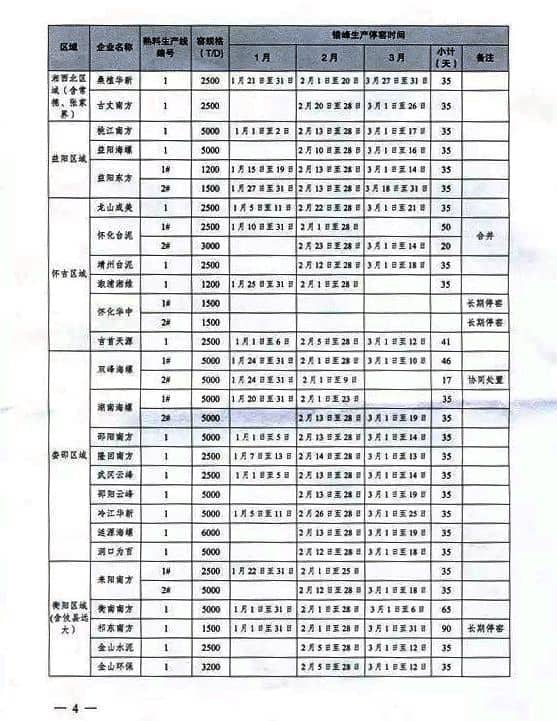 最近,湖南省水泥協(xié)會(huì)召開水泥錯(cuò)峰生產(chǎn)專題常務(wù)理事會(huì)議,根據(jù)該方案對(duì)全省56家水泥熟料生產(chǎn)企業(yè)的74條生產(chǎn)線的錯(cuò)峰生產(chǎn),制定了詳細(xì)的時(shí)間表和分區(qū)域督查執(zhí)行措施。今年一季度,在全省水泥熟料生產(chǎn)線錯(cuò)峰生產(chǎn)中,企業(yè)平均停窯35天,有協(xié)同處理城市生活垃圾任務(wù)的企業(yè)減半執(zhí)行。全省74條水泥熟料生產(chǎn)線錯(cuò)峰生產(chǎn)總計(jì)停窯達(dá)2696天。