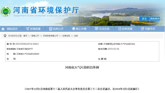 七、河南:實施大氣污染防治條例