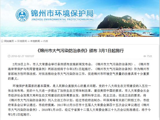 十三、遼寧錦州:實施首部地方性環(huán)保法規(guī)