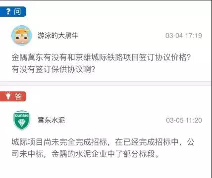 昨日(5日),冀東水泥回復: