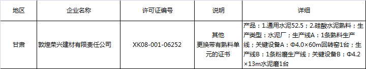 三、其他(更換帶有熟料單元的證書)
