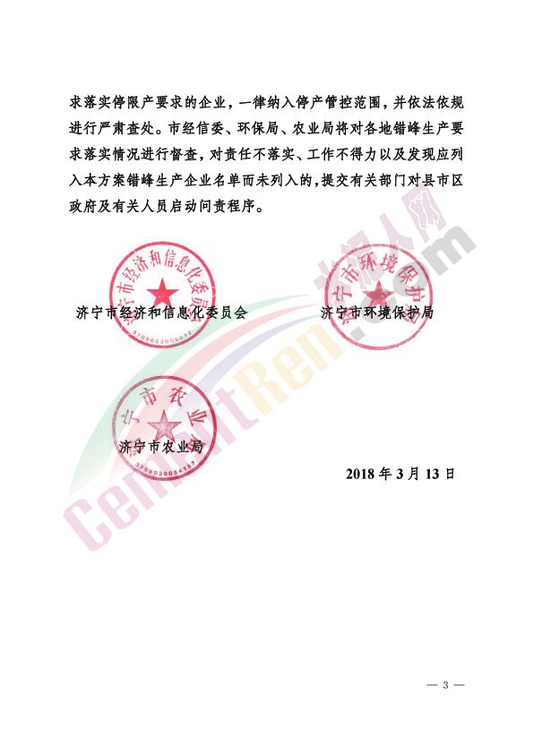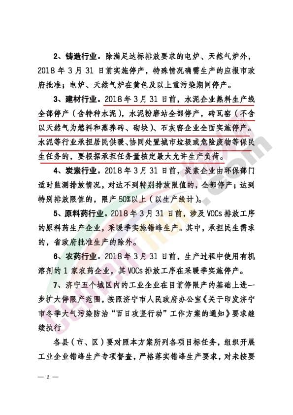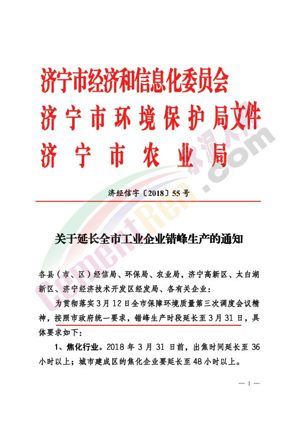 【水泥人網(wǎng)】昨日(13日)濟寧市經(jīng)信委、環(huán)保局、農(nóng)業(yè)局聯(lián)合發(fā)布《關(guān)于延長全市工業(yè)企業(yè)錯峰生產(chǎn)的通知》通知稱,為貫徹落實3月12日全市保障環(huán)境質(zhì)量第三次調(diào)度會議精神,按照市政府統(tǒng)一要求,錯峰生產(chǎn)時段延長至3月31日。