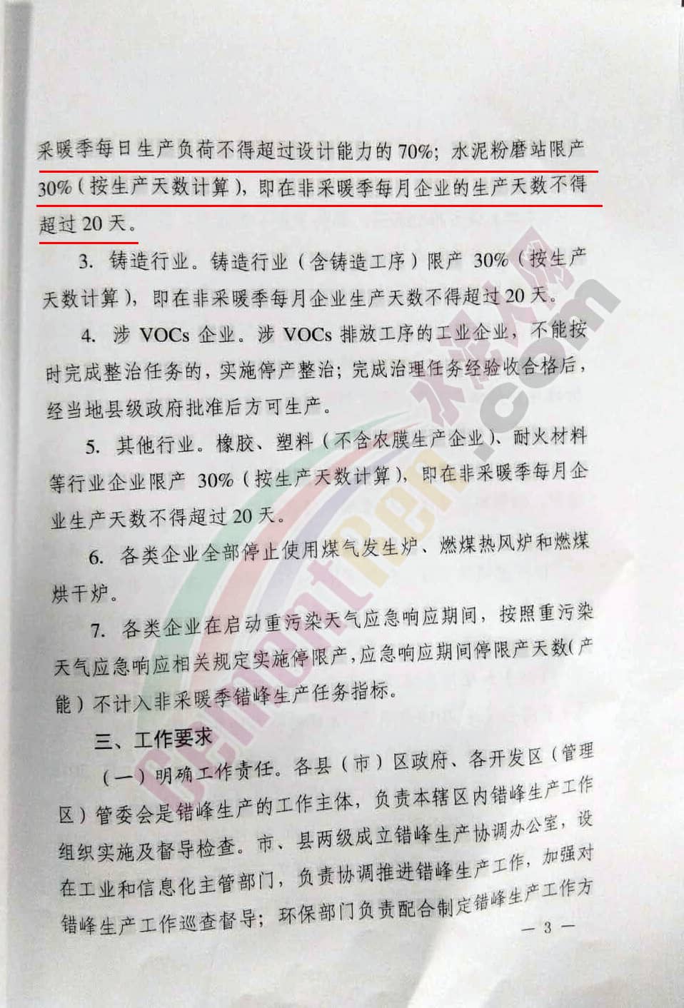 其中針對于水泥行業(yè)的錯峰生產(chǎn)要求為,水泥窯限產(chǎn)30%(按設(shè)計產(chǎn)能計算),即在非采暖季每日生產(chǎn)負荷不得超過設(shè)計能力的70%;水泥粉磨站限產(chǎn)30%(按生產(chǎn)天數(shù)計算),即在非采暖季每月企業(yè)的生產(chǎn)天數(shù)不得超過20天。