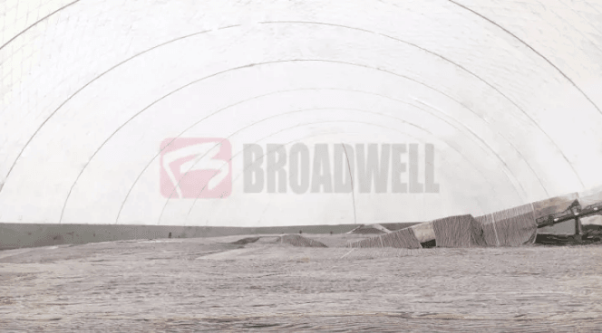 (天山股份阜康水泥全封閉式氣膜原料棚內(nèi)景)