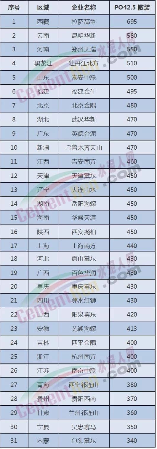 注:以上信息來源于水泥人網(wǎng)信息中心,如有差池,以實(shí)際報(bào)價(jià)為準(zhǔn)!