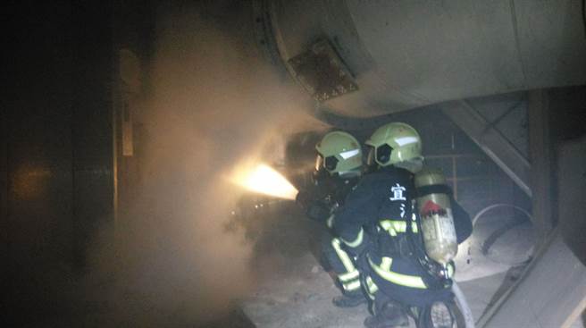 宜蘭潤泰水泥公司22日凌晨傳出火警,消防人員趕抵現(xiàn)場后緊急滅火。