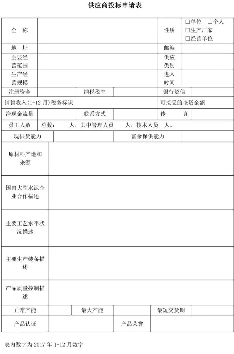 1.資料文件包括:企業(yè)主要資質證明文件(加蓋公章);生產制造型企業(yè)除提供主要資質證明文件外還需提交安全生產許可證、質量體系認證證書;聯(lián)系人基本信息;供應商投標報名申請表(見附件1)及近三年業(yè)績清單。