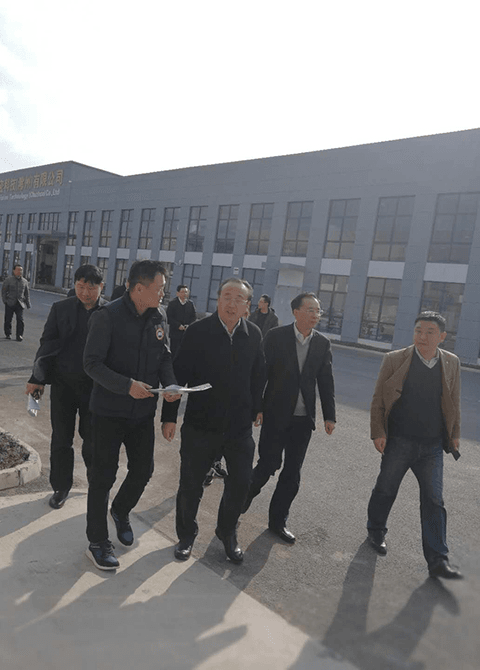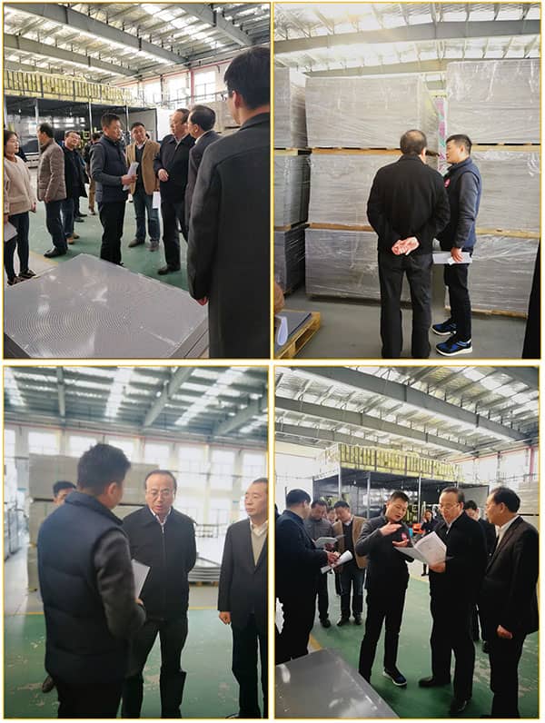 參觀過程中張總就曼式聲學新型環(huán)保材料性能、使用年限、環(huán)境、價格以及工廠當前運營情況等信息向張書記給予細心講解:
