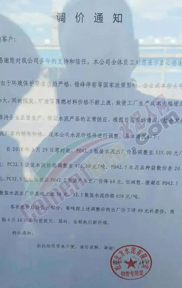 【水泥人網】或受周邊區(qū)域影響,吉林地區(qū)主導企業(yè)也于近期上調了水泥價格,松原北方調價通知稱:由于環(huán)境保護日趨嚴格,錯峰停窯等國家政策影響,企業(yè)成本較去年加大。同時煤炭、礦渣等原燃材料價格不斷上漲,致使工廠生產成本大幅增加,為了維持企業(yè)正常生產,保證水泥產品的正常供應,根據目前市場情況,結合其他水泥廠家的銷售價格,將公司水泥價格進行調整。自2018年3月29日零時起: