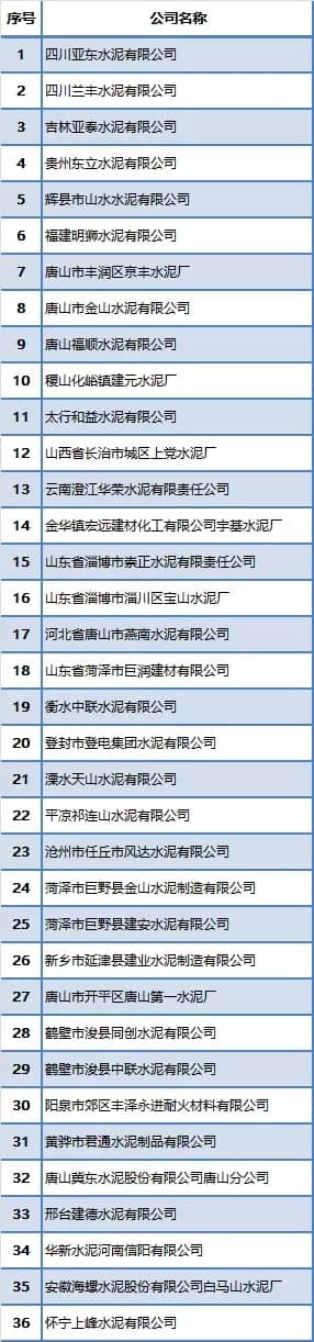 2017年部分被環(huán)保部門通報(bào)的水泥企業(yè)