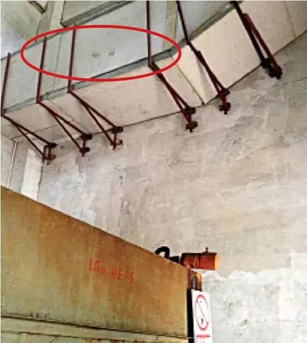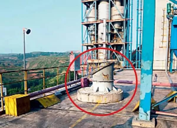 2、水泥廠預(yù)熱器系統(tǒng)下料管清堵孔處用跳板搭設(shè)簡易平臺,無防墜落措施,無逃生通道。作業(yè)過程容易出現(xiàn)人員高處墜落傷害;如果出現(xiàn)熱物料異常噴出,作業(yè)人員無法逃離,還會造成熱物料的高溫灼燙傷害。