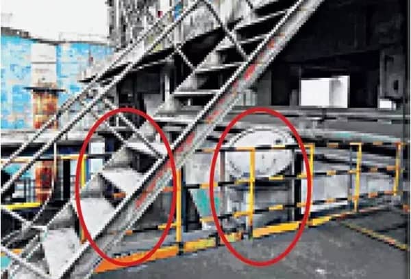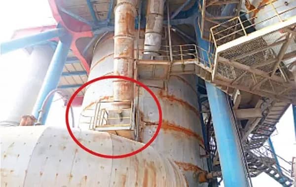 4 、水泥廠預(yù)熱器系統(tǒng)下料管清堵孔處設(shè)置了平臺,且直梯進(jìn)入,平臺狹窄無逃生通道。若出現(xiàn)熱物料異常噴出,作業(yè)人員無法逃離,容易造成熱物料的高溫灼燙傷害。