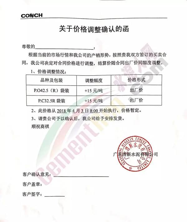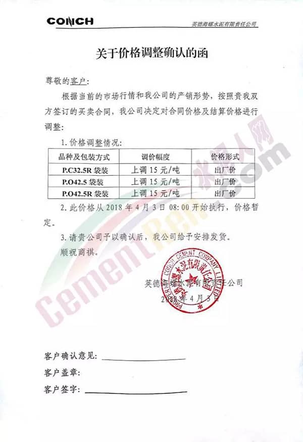英德海螺水泥調(diào)價函