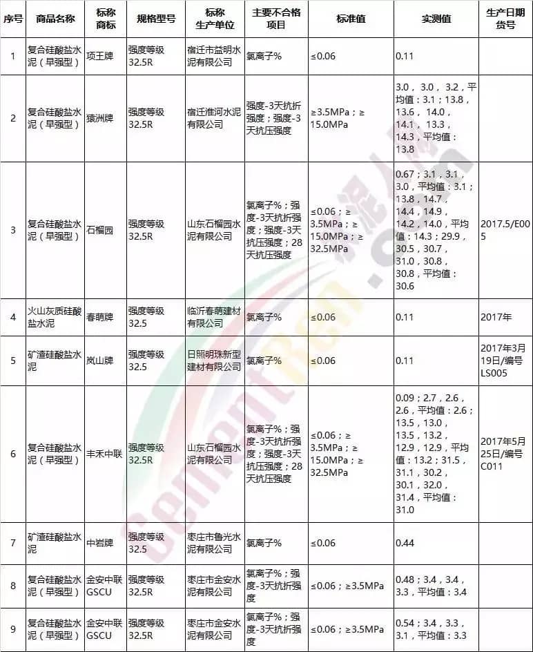 3月28日,江蘇省工商行政管理局官網(wǎng)公布了上年第一階段水泥抽檢結(jié)果,被檢測(cè)的42組樣品中,不合格組9個(gè),不合格率為21.4%。不合格項(xiàng)目為強(qiáng)度不夠和氯離子超標(biāo)。